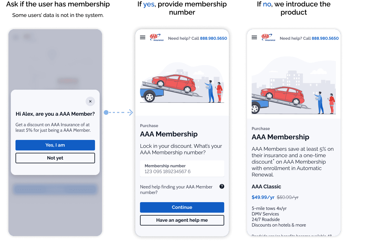 The Gap: AAA membership wasn’t part of the online flow. If users didn’t already have one, they had to leave the site and call an agent to complete their quote.